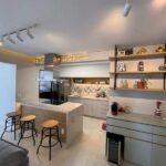 São 70m² considerando os quintais privativos e 50m² de área interna