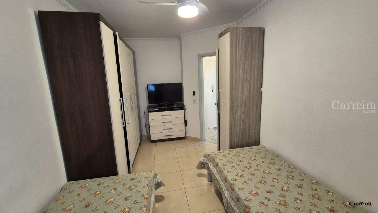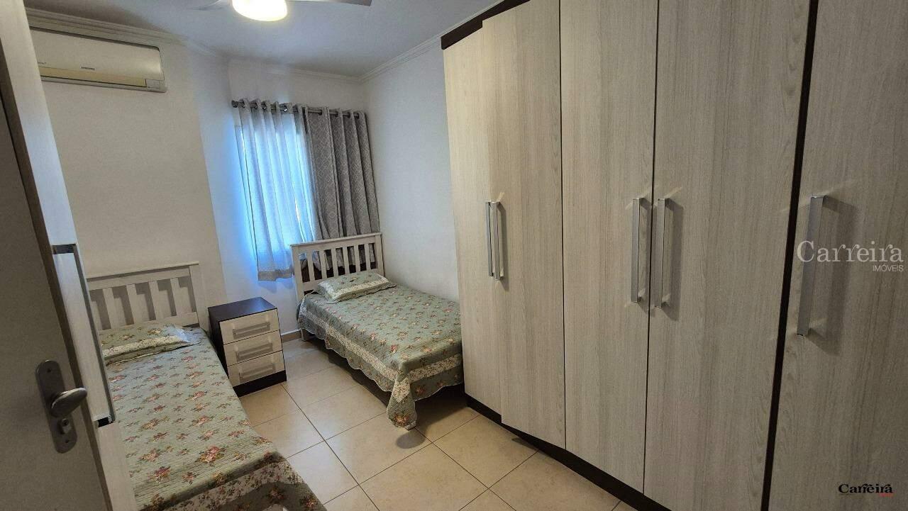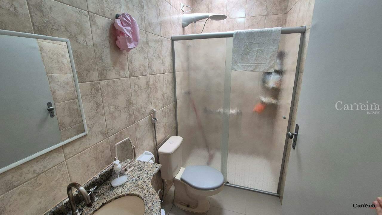 São 2 dormitórios (1 com varanda), sala, cozinha, 2 banheiros, área de serviço, 2 vagas.
